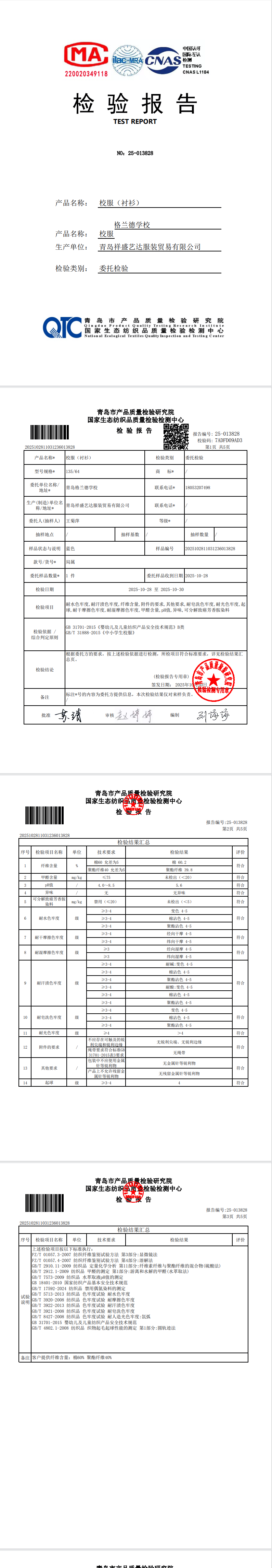 青岛格兰德学校2025-2026学年学生制服装质检合格公示