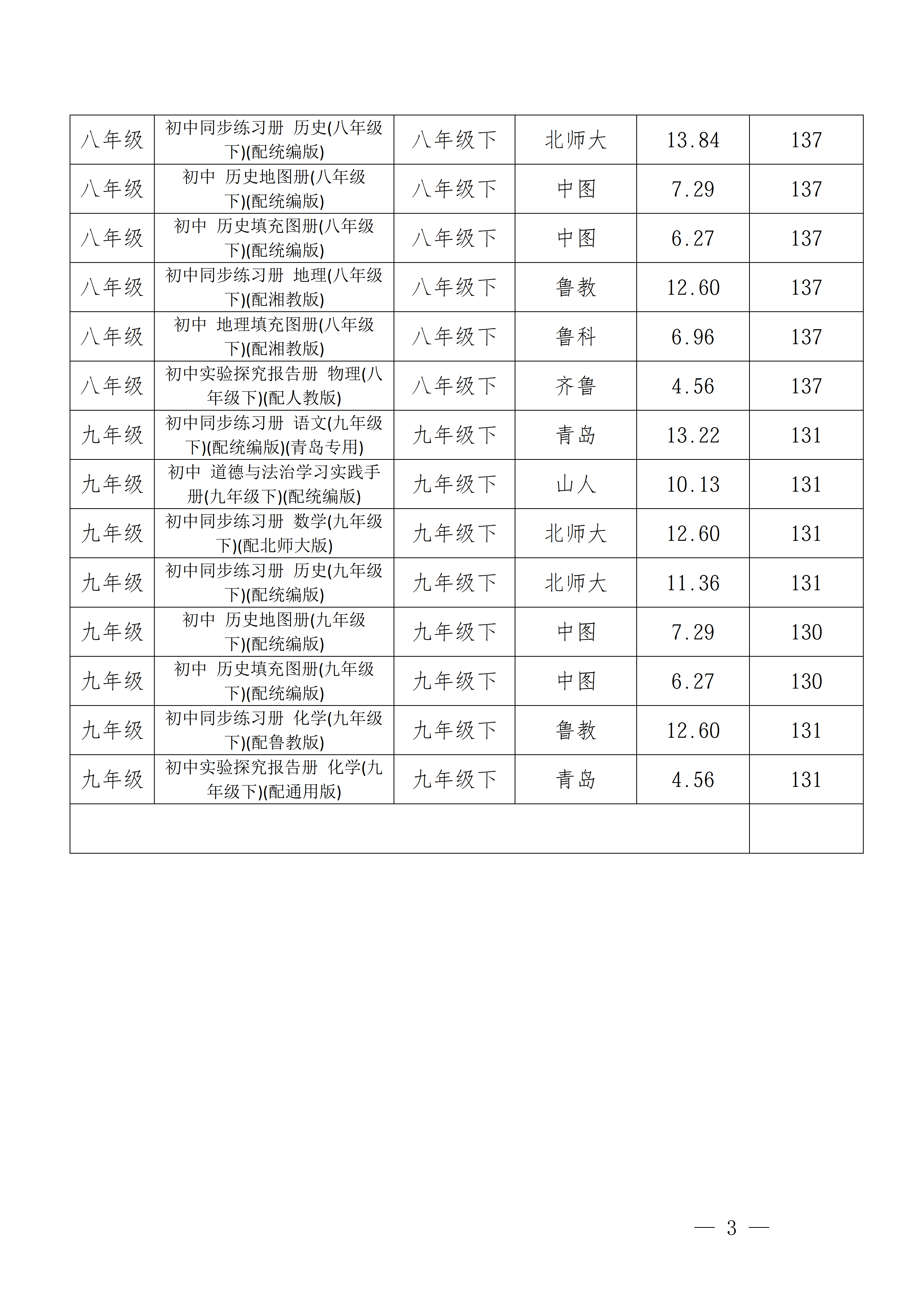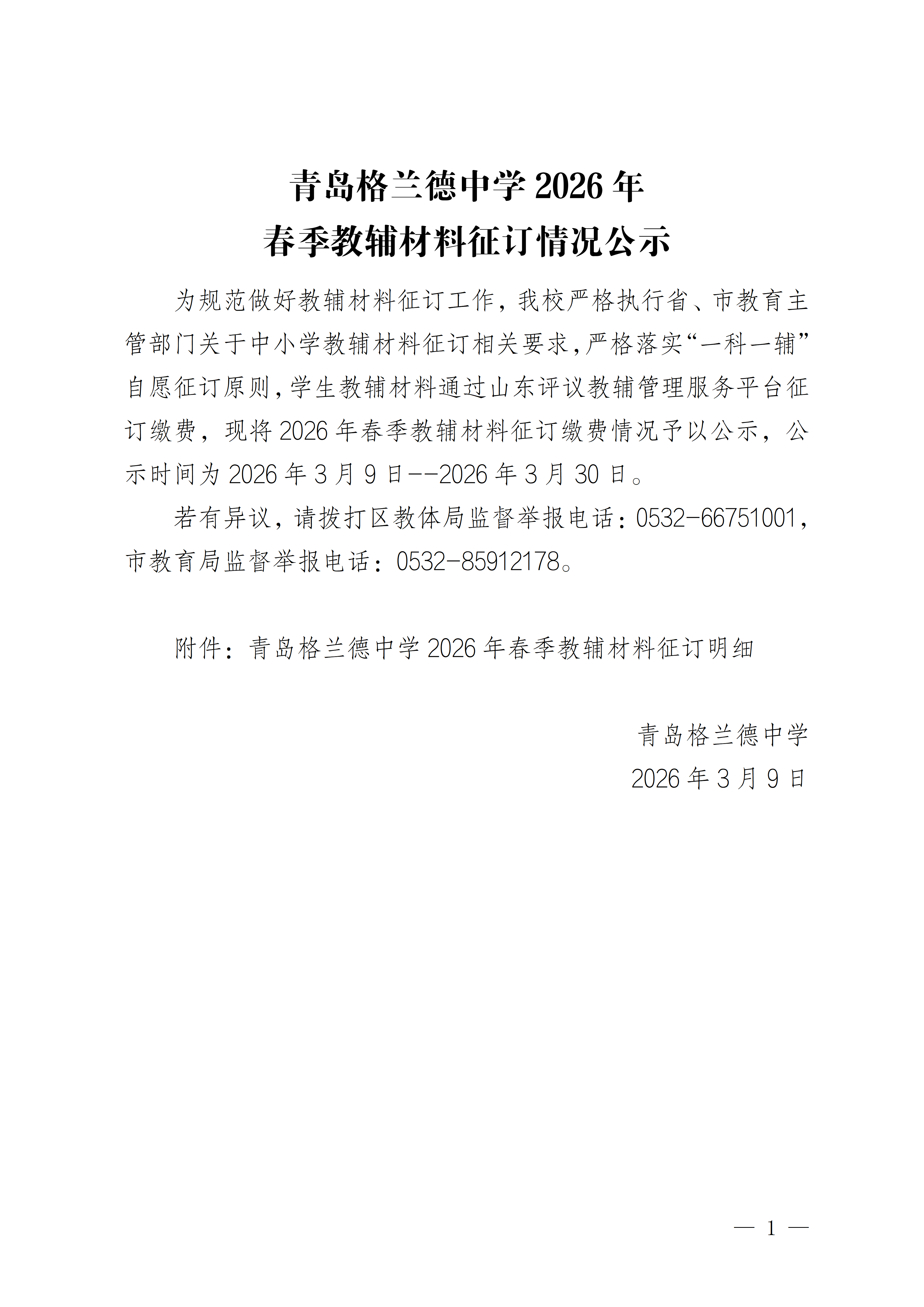 青岛格兰德中学2026年春季教辅材料征订情况公示