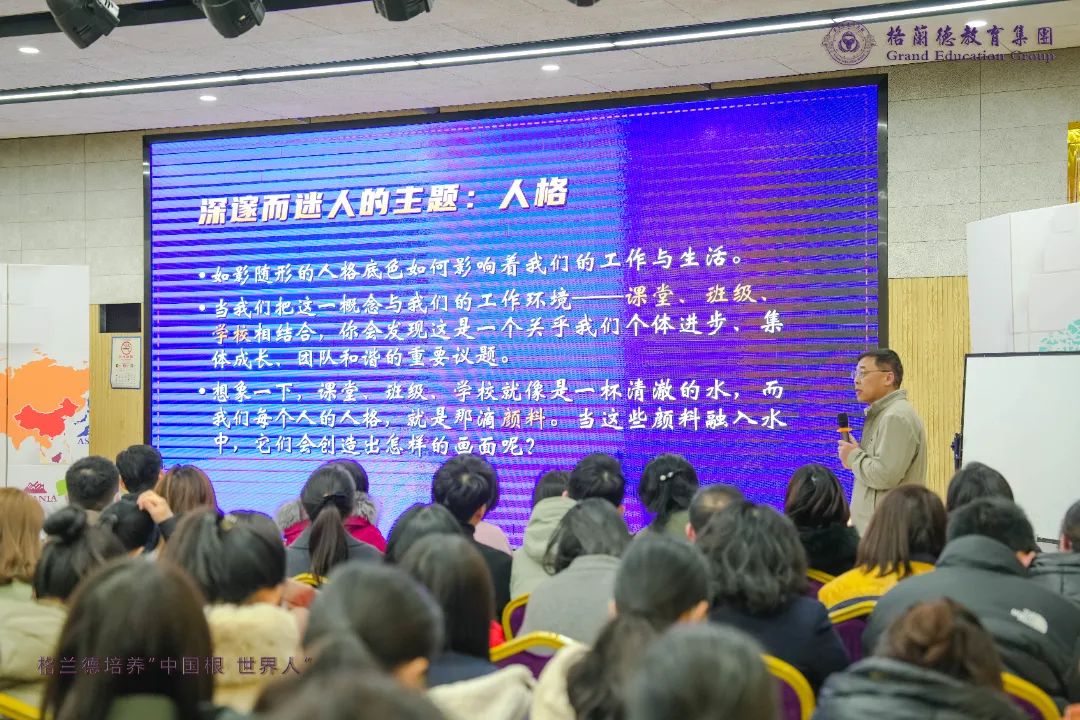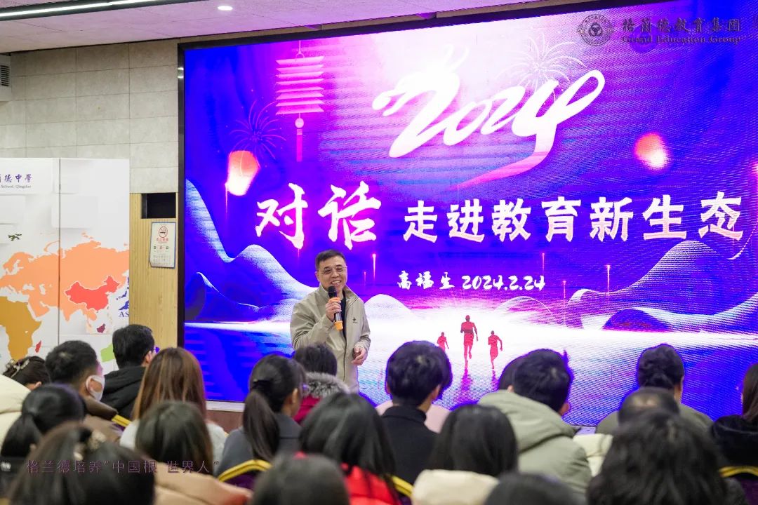 时光镌刻着成长的足迹,承载着期盼与耕耘的希望。繁花似锦的上学期已成过往,热辣滚烫的新学期正式开启。2024年2月24日,格兰德教育集团新学期全体教职工大会在5号楼会议室举行,执行校长高福生以《对话,走进教育新生态》为题做主题报告。高福生校长通过系统的解读对话与人格,引领教职工重构认知、重构自我、重构世界、重构关系、重构教育新生态,为新学期教育教学工作的开展树立目标、明确方向。