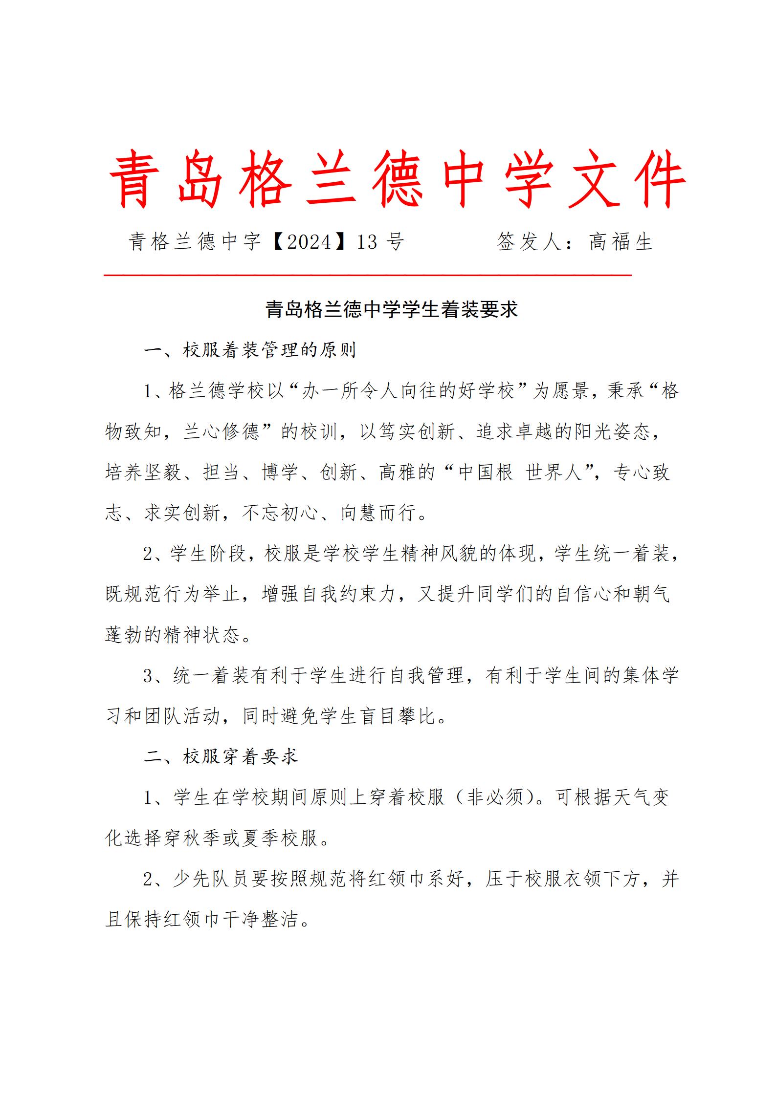 青岛格兰德中学学生着装要求