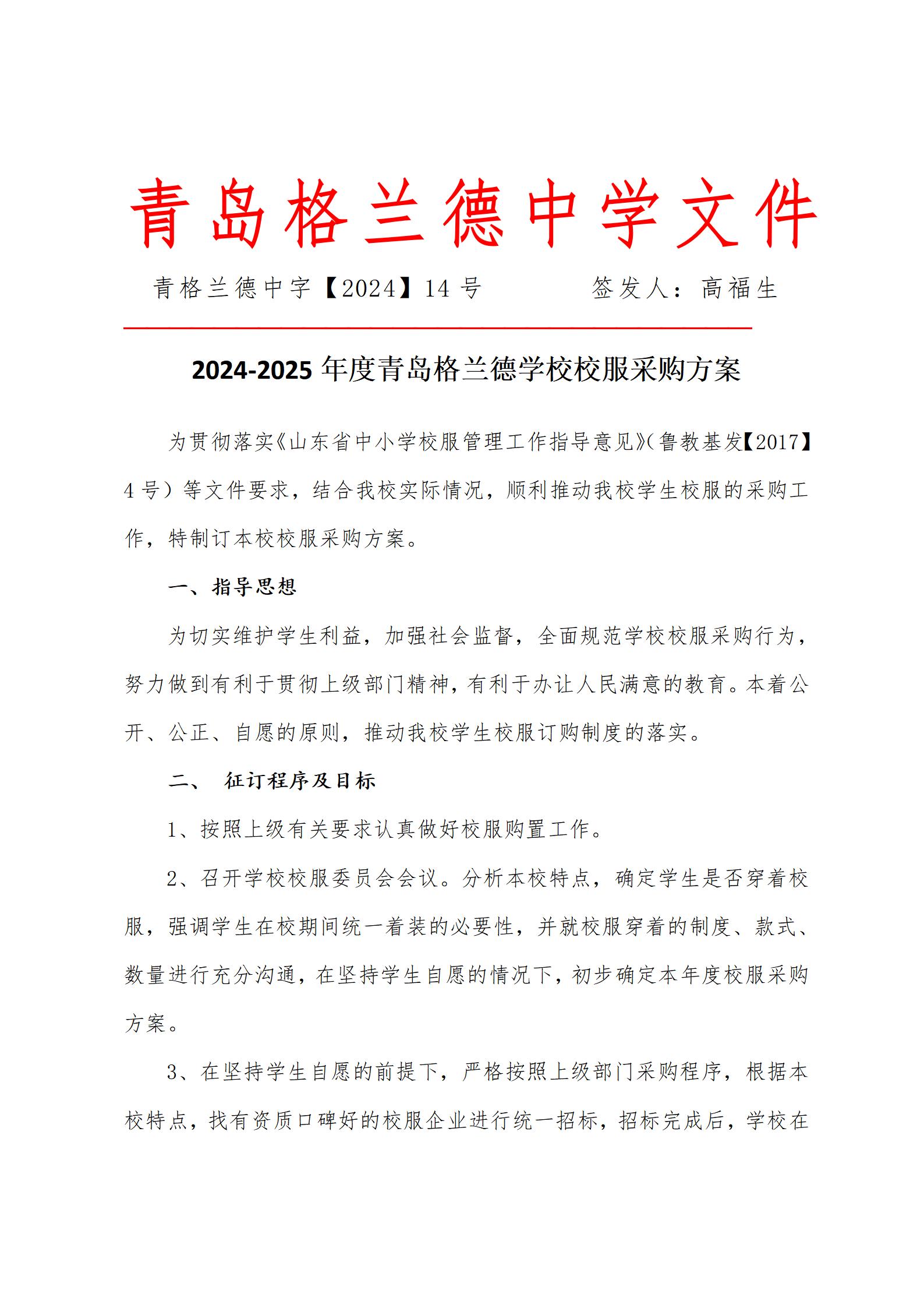 青岛格兰德学校2025-2026学年学生制服装质检合格公示