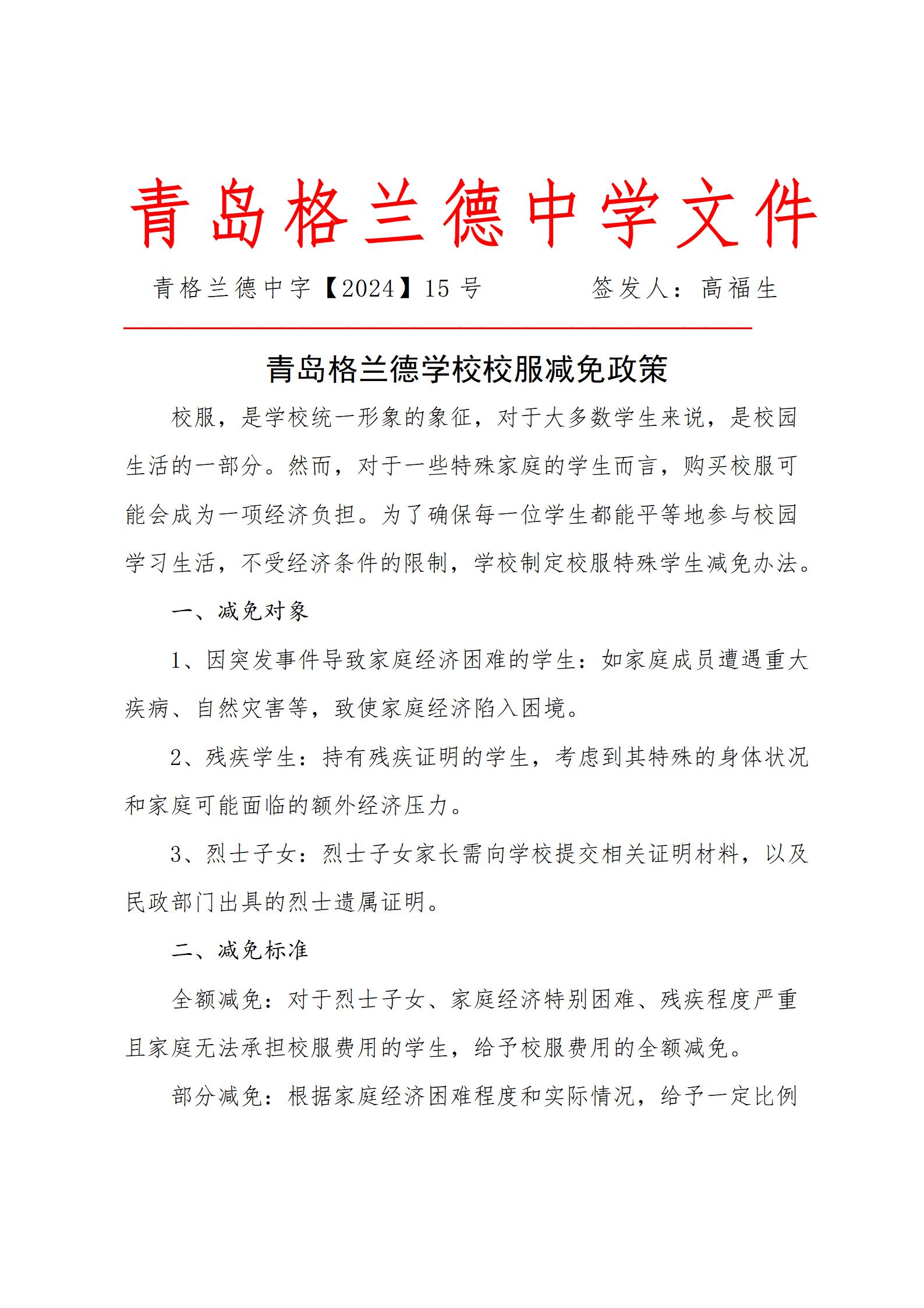 青岛格兰德学校2025-2026学年学生制服装质检合格公示