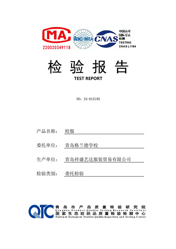 青岛格兰德学校2025-2026学年学生制服装质检合格公示